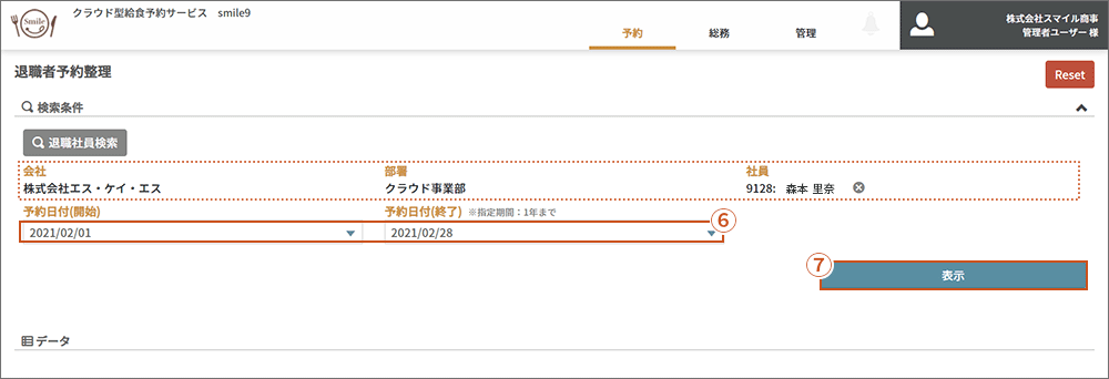 ⑥退職者のアカウントが反映されたら、予約日付を選択します